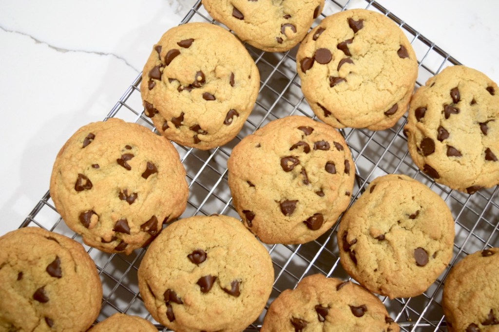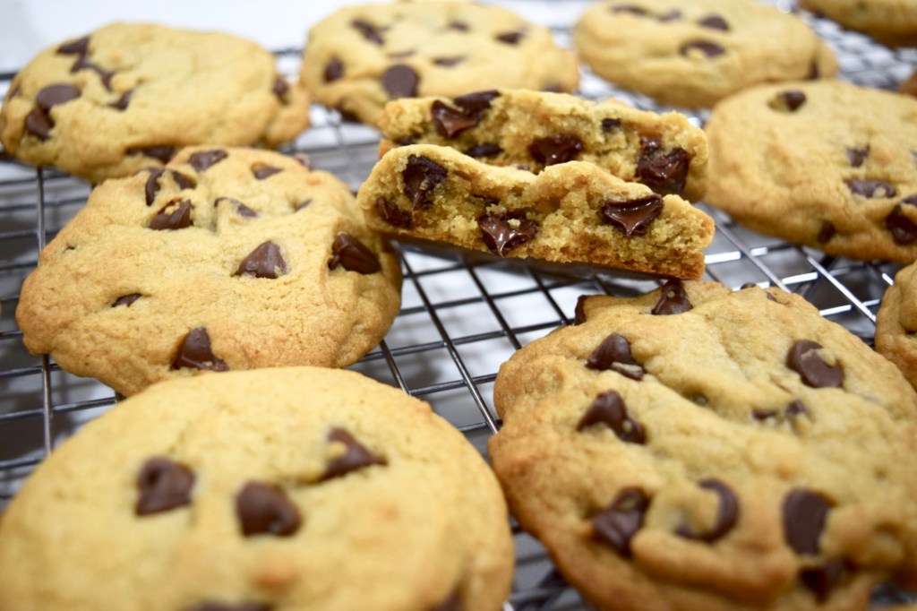 - As soon as they are pulled out of the oven, gently bang the baking sheets on a heat-proof surface (this removes any trapped air and creates that gooey, chewy center).